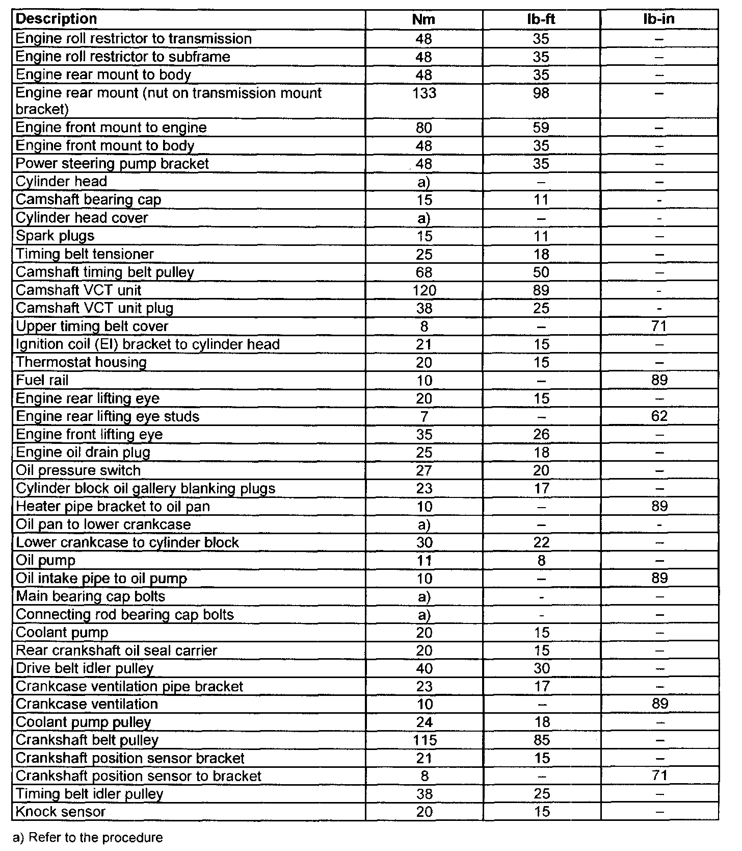 Torque Specifications 2 0f 2: