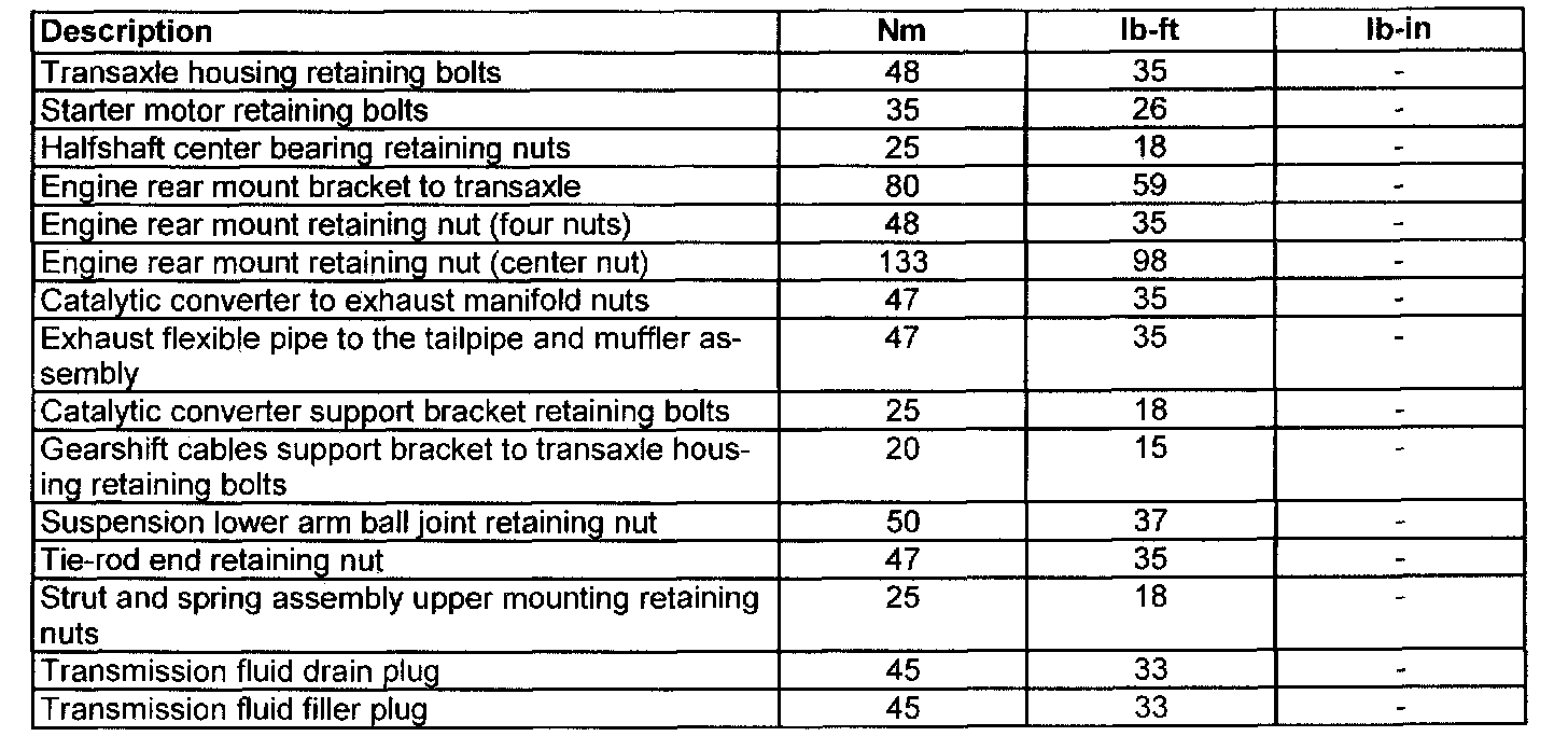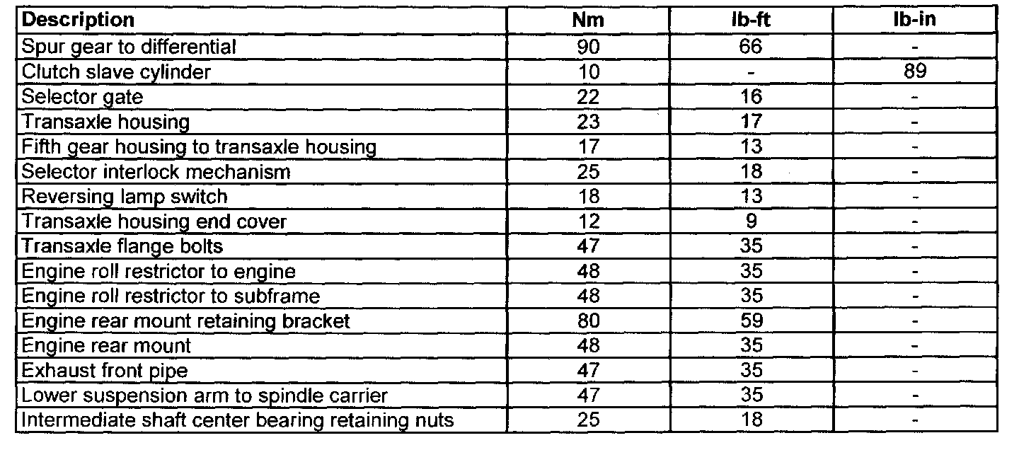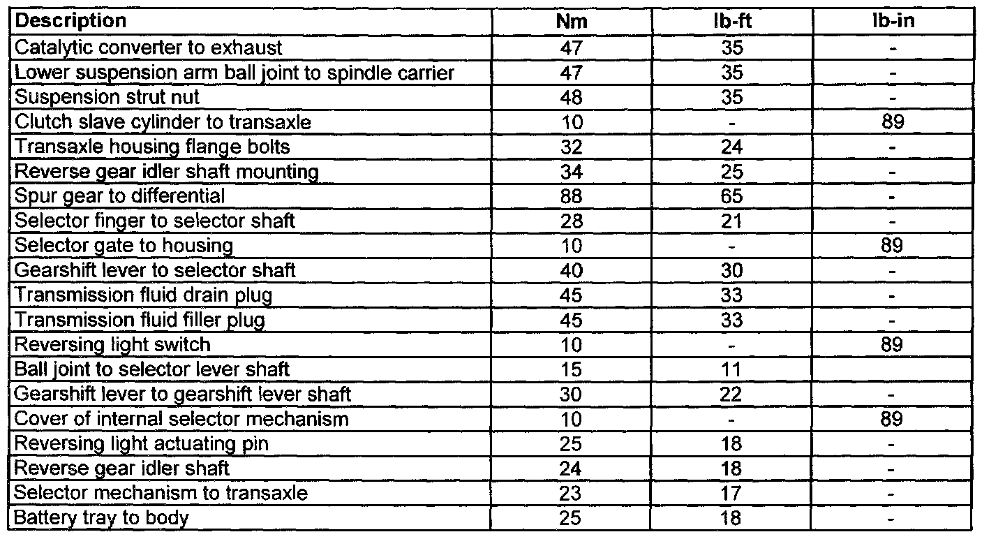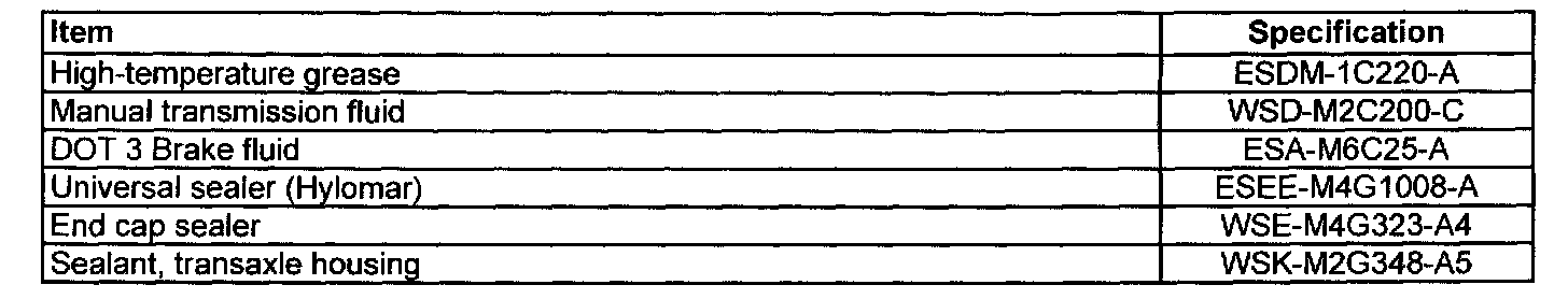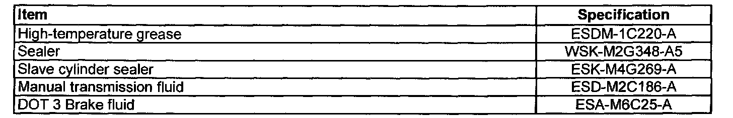 Manual Transmission/Transaxle and Clutch - General InformationLubricants, Fluids, Sealers and Adhesives