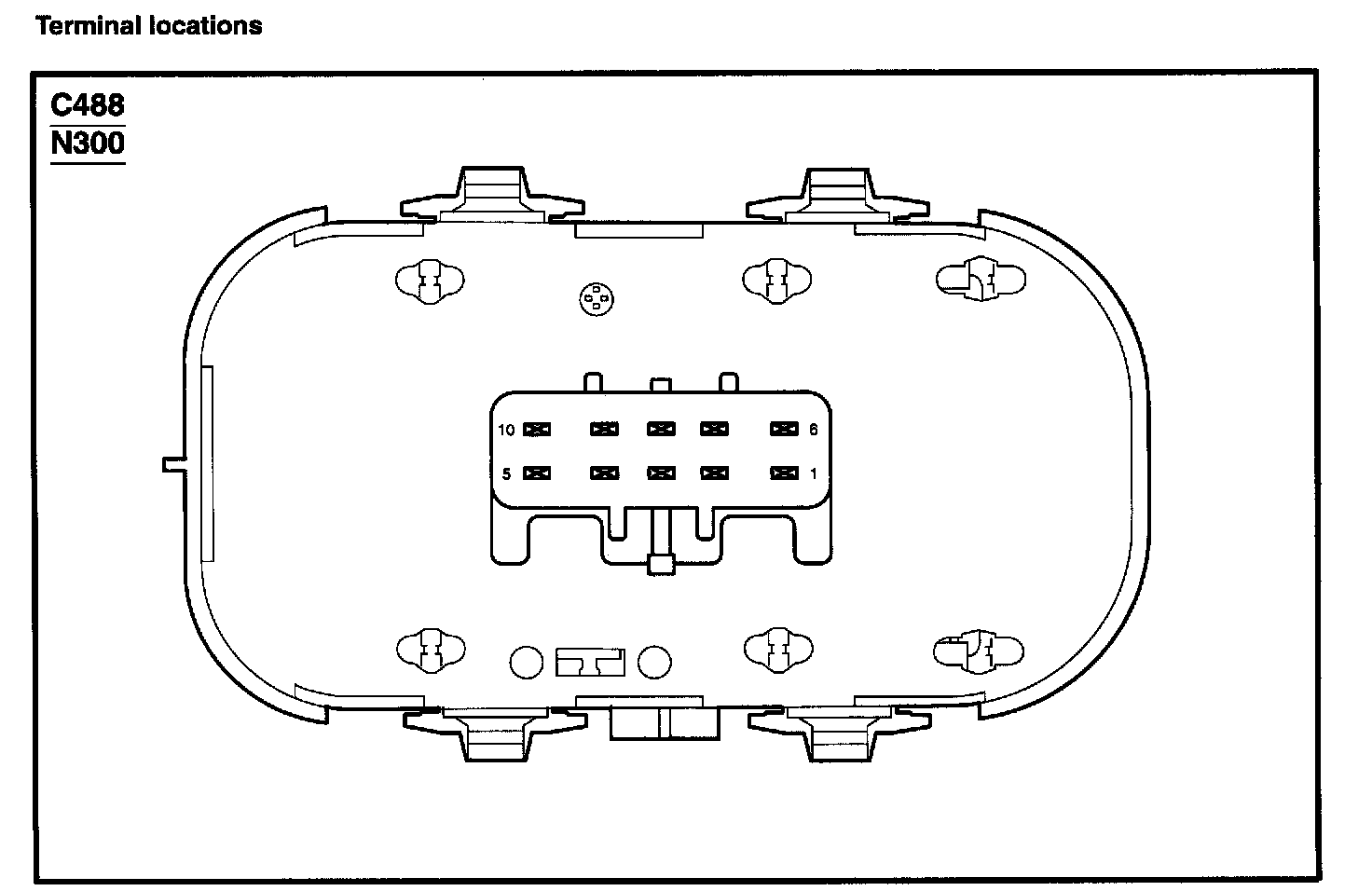 Testing information for each component includes a schematic, a view of the terminal locations and step-by-step test procedures. Terminal locations are identified by numbers or letters that may be on the component or next to it.
