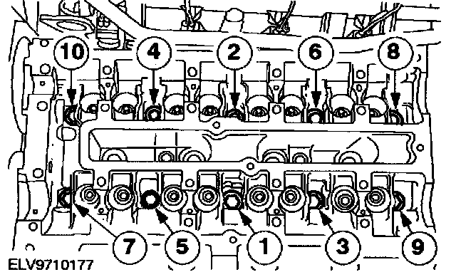Tighten the cylinder head bolts in three stages in the sequence indicated: