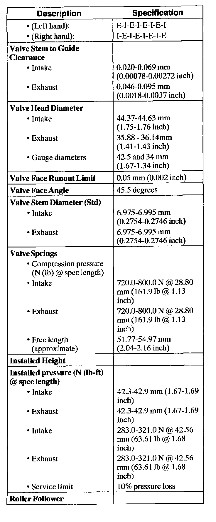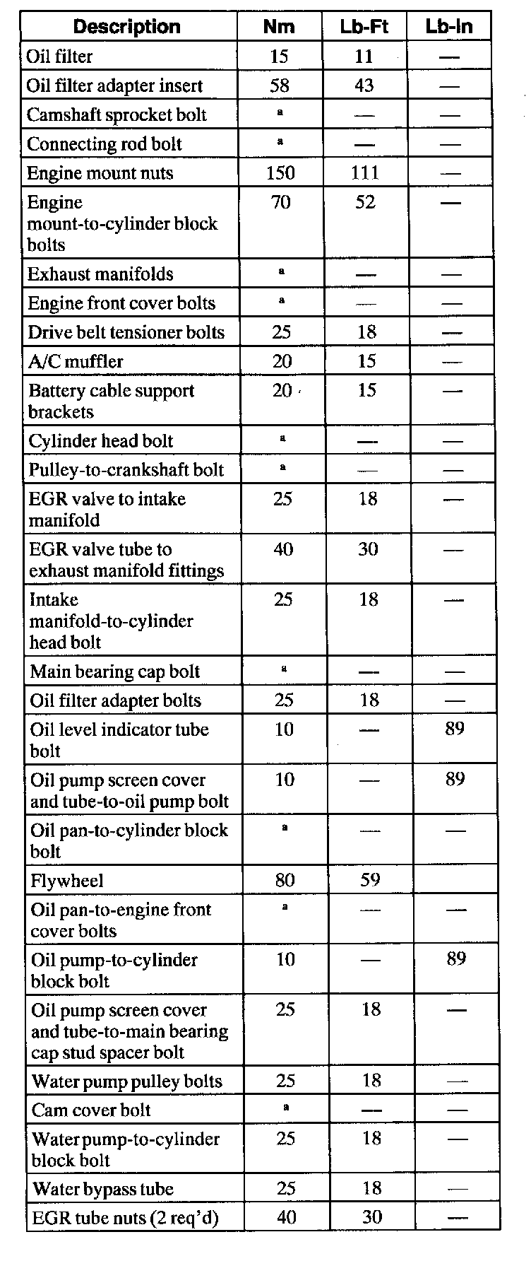 Torque Specifications