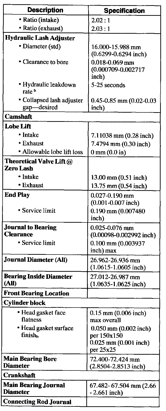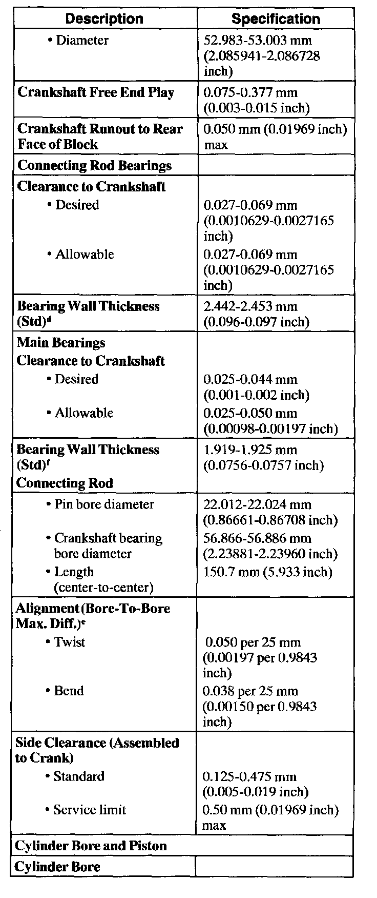 f Cylinder bore diameter measured at 31 mm (1.24 inch) from top of block.