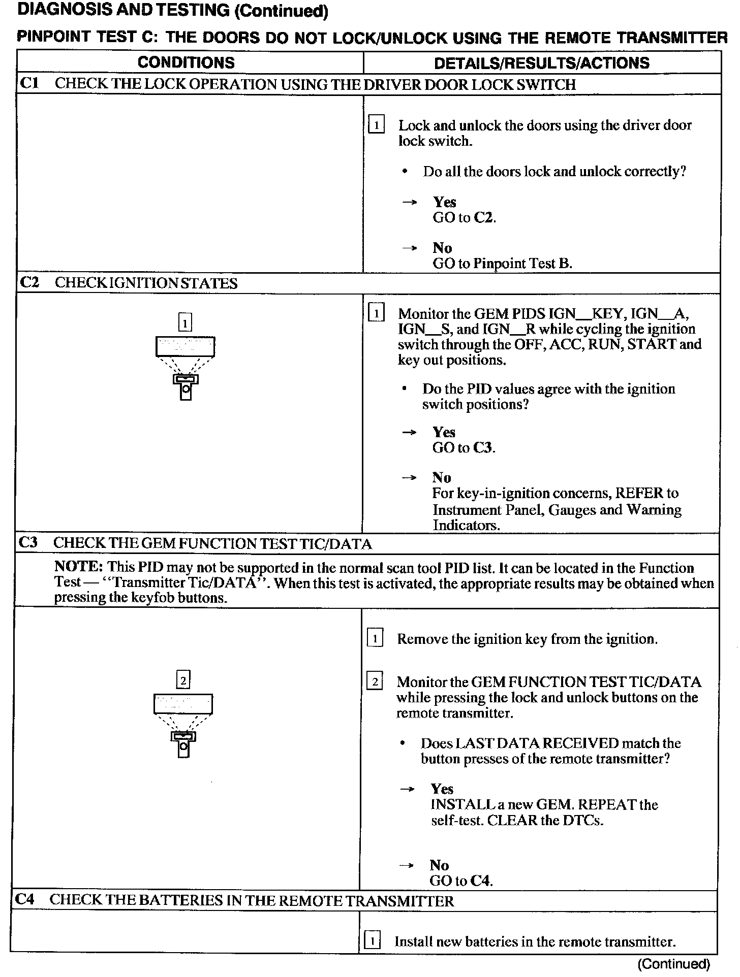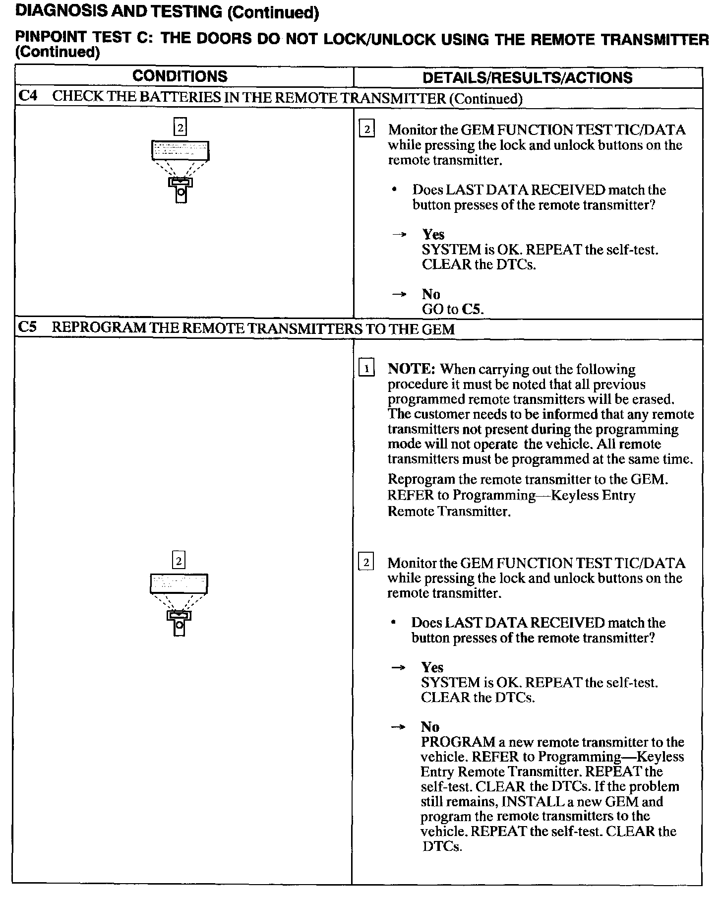 Test C: Doors Do Not Lock/Unlock Using the Remote Transmitter