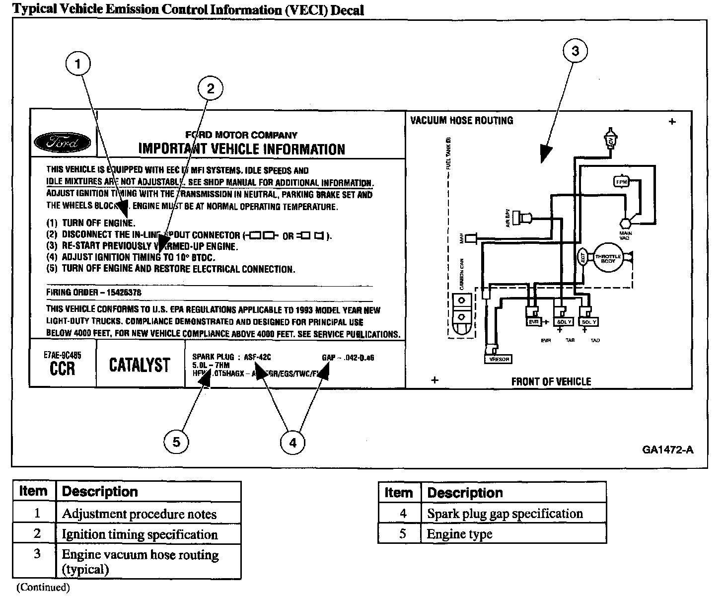 Typical Vehicle Emission Control Information (VECI) Decal: