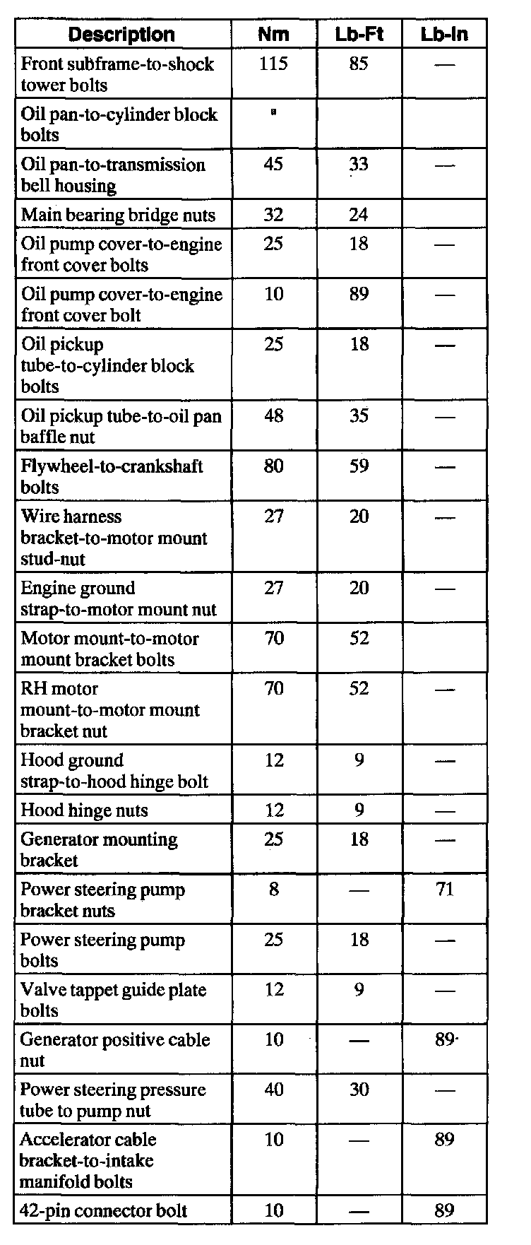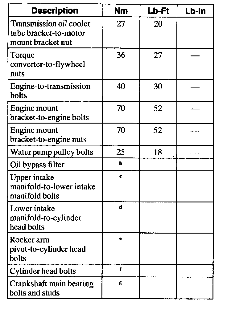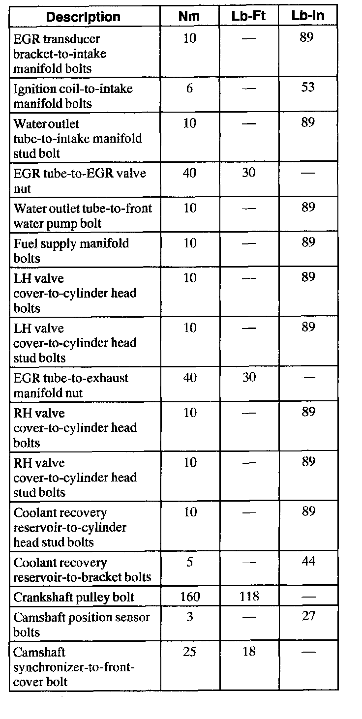Caution: Do not loosen all the bolts at the same time, only work on one bolt at a time. In sequence, loosen the bolts two or three revolutions and tighten the bolts one at a time in the following manner. Long bolts: 45 Nm (33 ft. lbs.). Tighten an additional 180 degrees. Go to the next bolt in sequence. Short bolts: 25 Nm (18 ft. lbs.). Tighten an additional 180 degrees. Go to the next bolt in sequence.