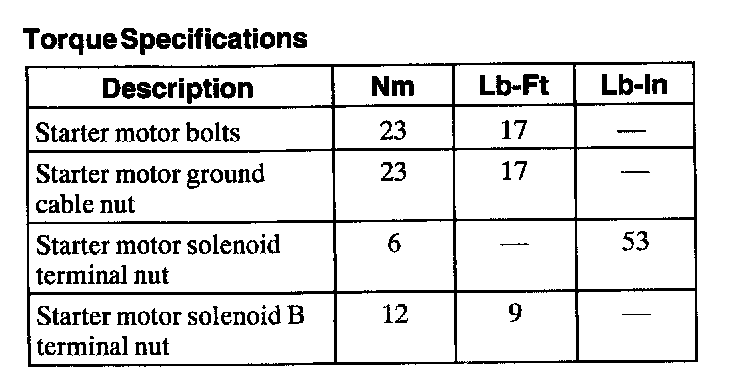 Torque Specifications: