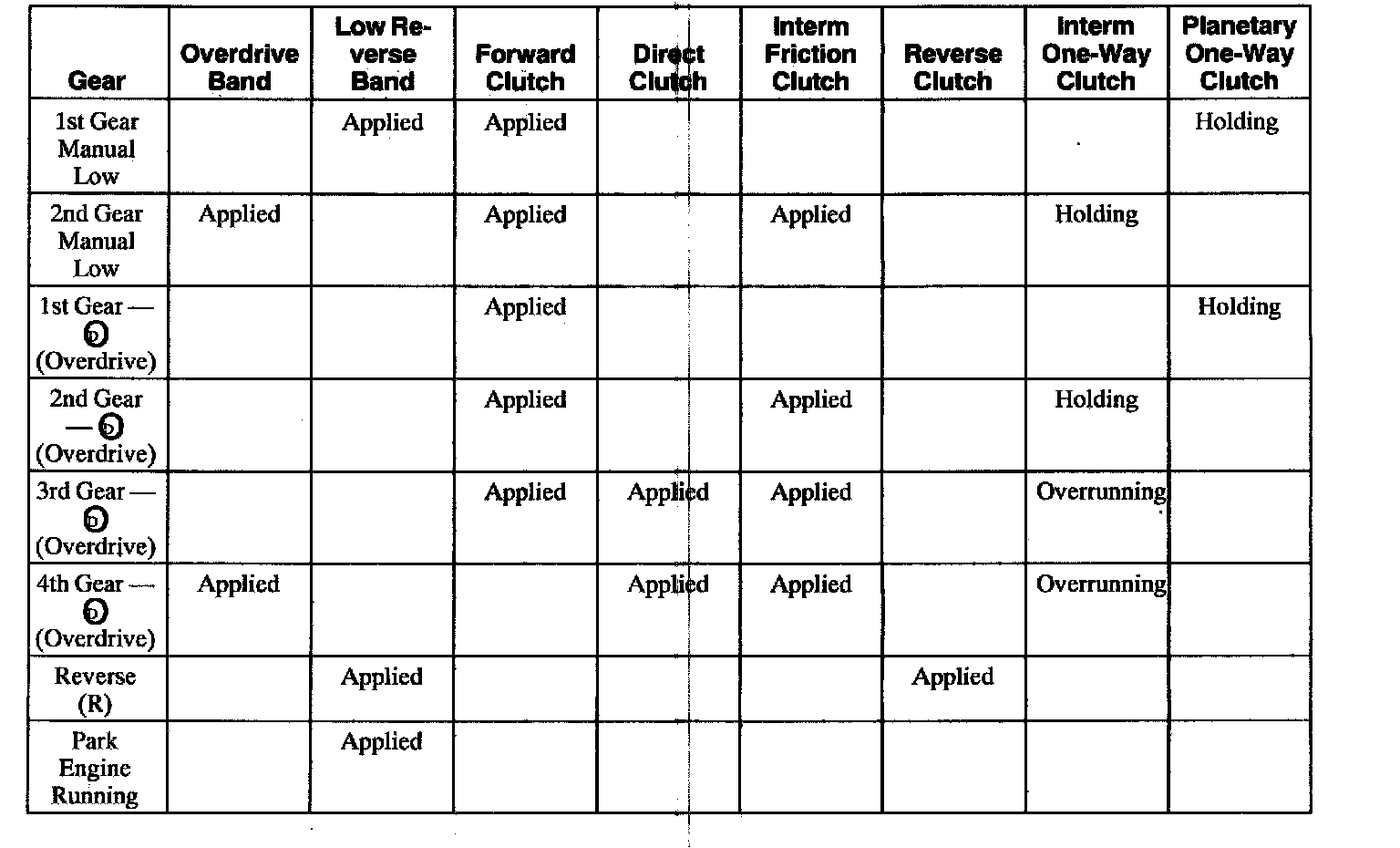 Band/Clutch Application Chart