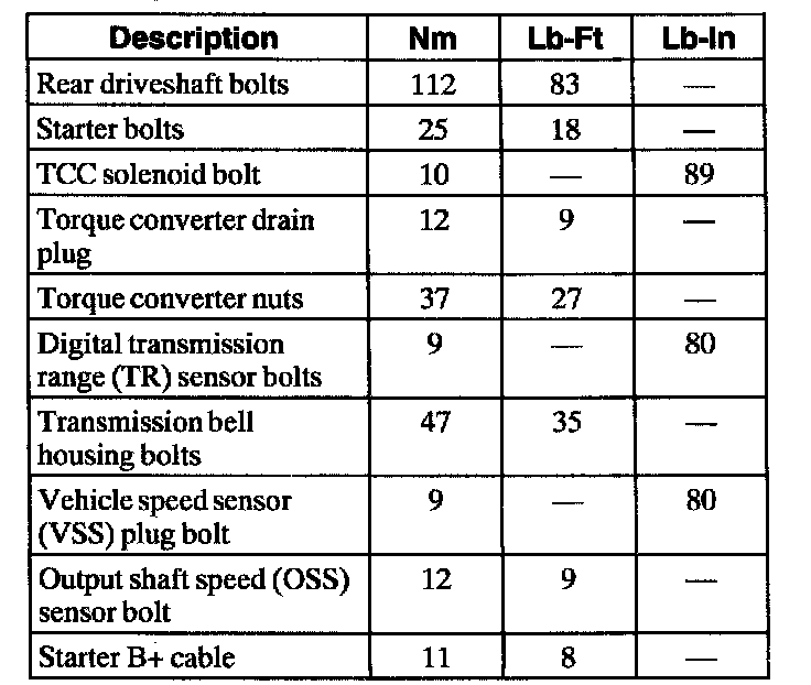 Flex Plate to Engine 80 Nm (59 ft. lb.)