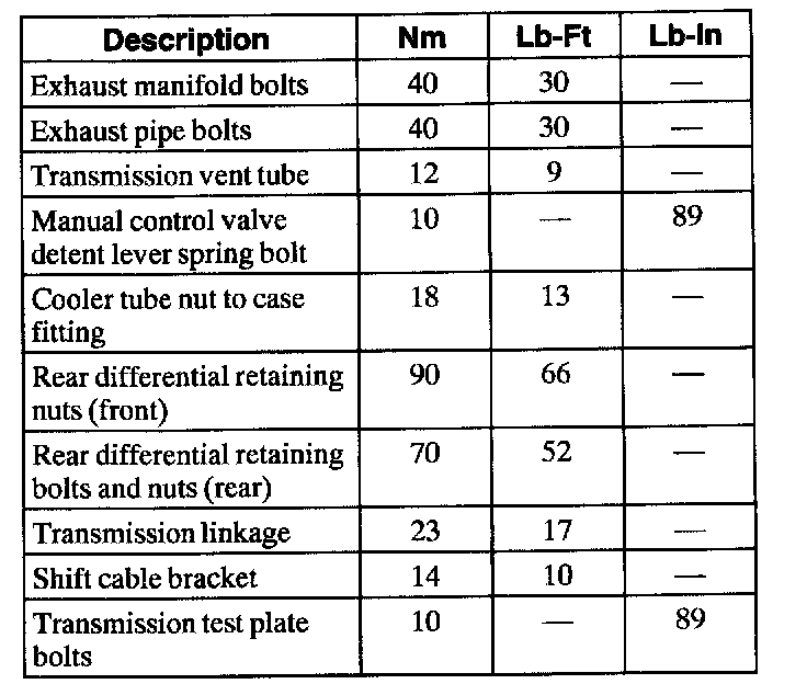 Torque Specifications