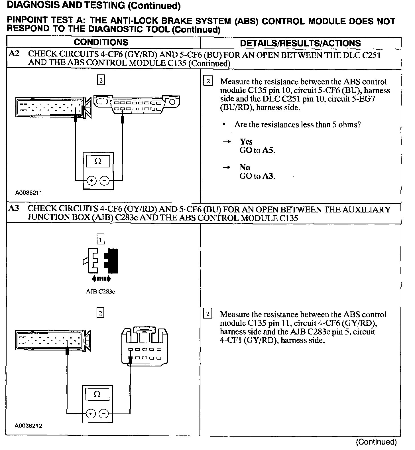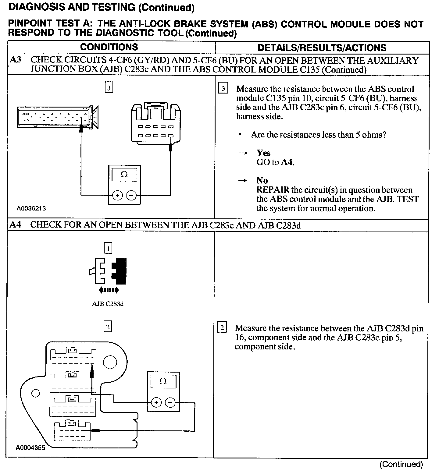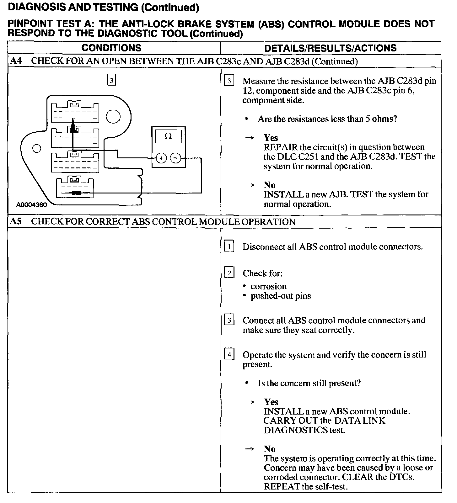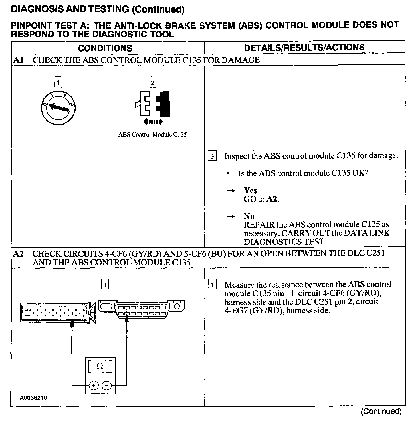 Test A: ABS Control Module Does Not Respond to the Scan Tool