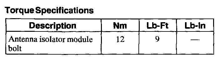 Torque Specifications: