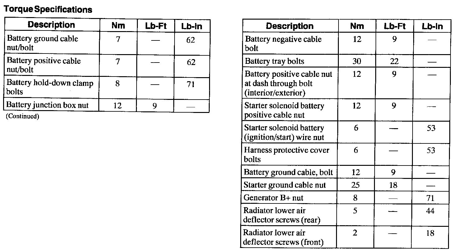 Torque Specifications: