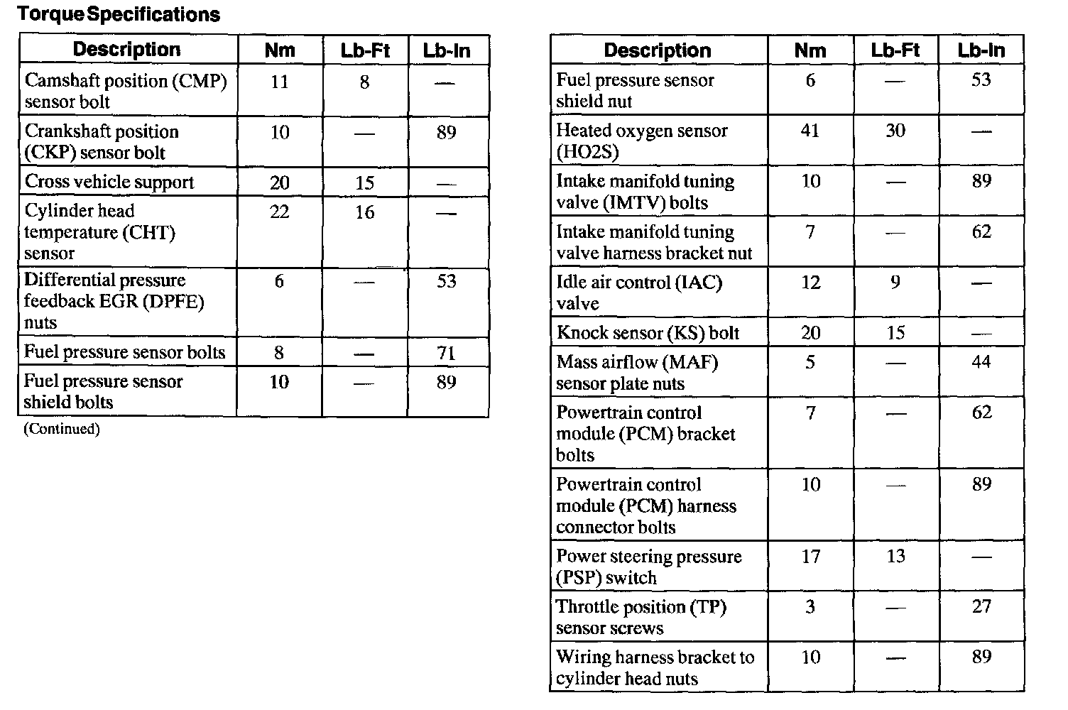 Torque Specifications: