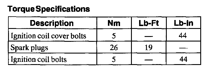 Torque Specifications: