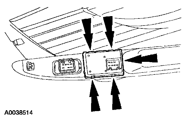 CAUTION: Carefully lift out the door switch panel from the front of the door panel to avoid breaking the tab at the rear of the panel.