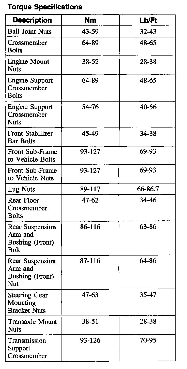 Torque Specifications: