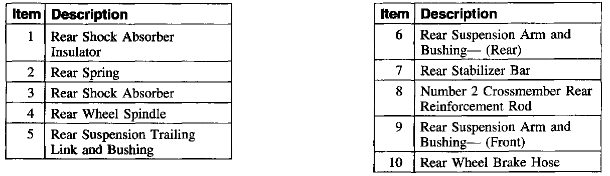 The rear strut and spring assemblies can be disassembled to replace any of the individual components. The rear strut and spring assemblies can be replaced independently.