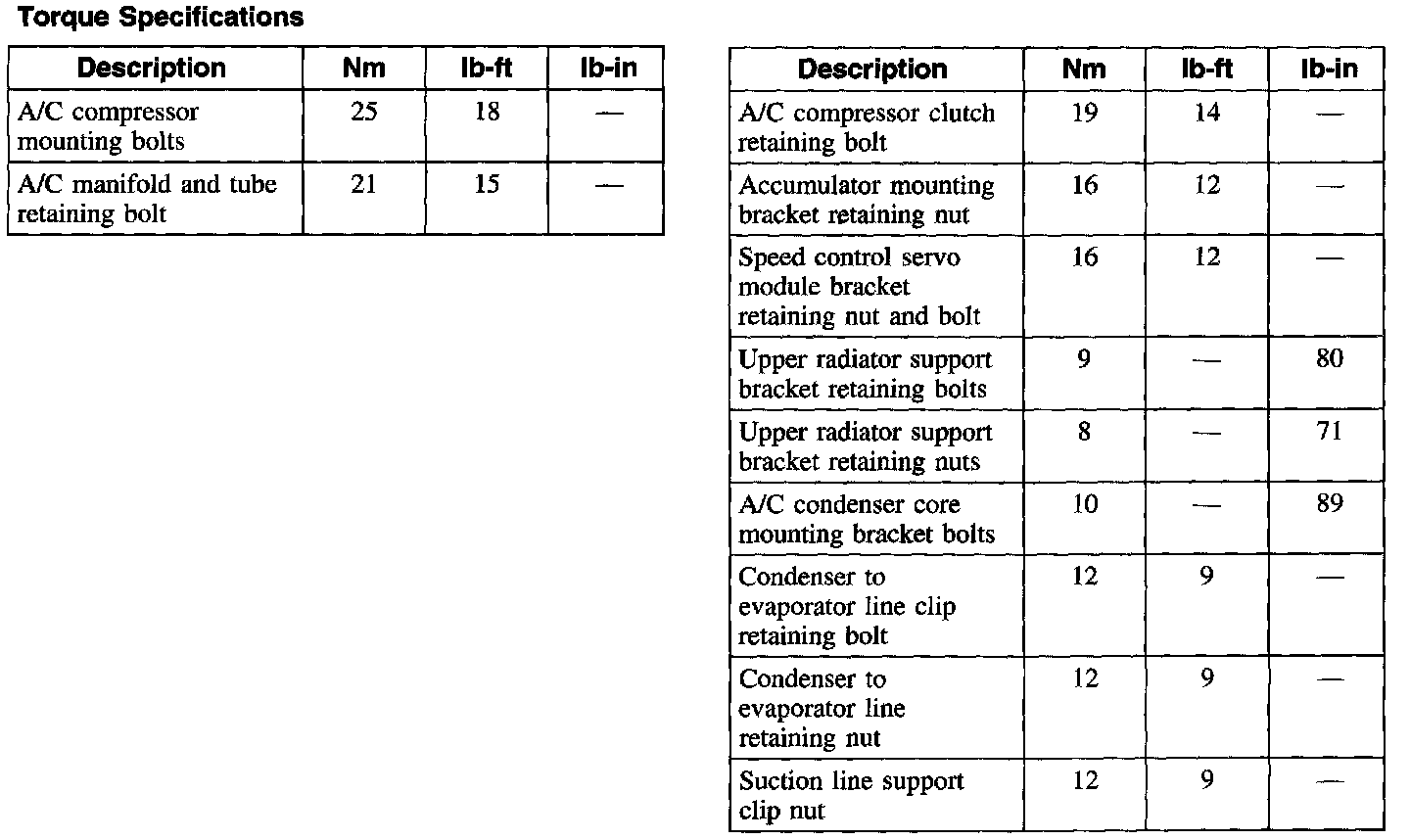 Torque Specifications: