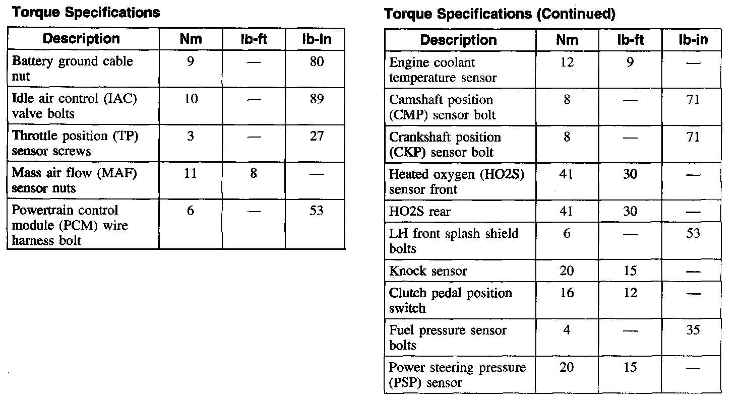 Torque Specifications: