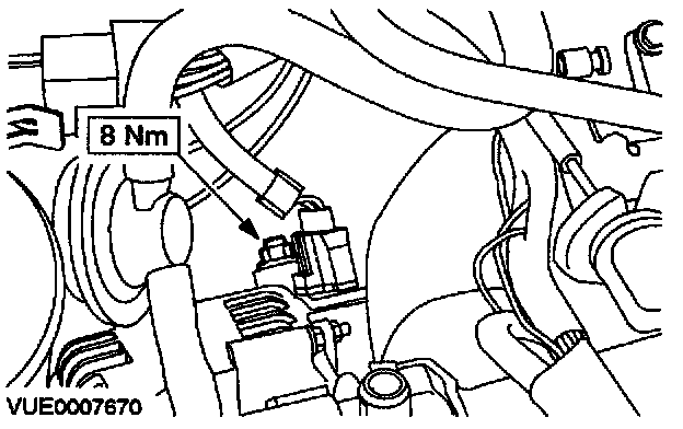 12. Disconnect the lower evaporative emission canister vacuum line and remove the evaporative emission canister purge valve.