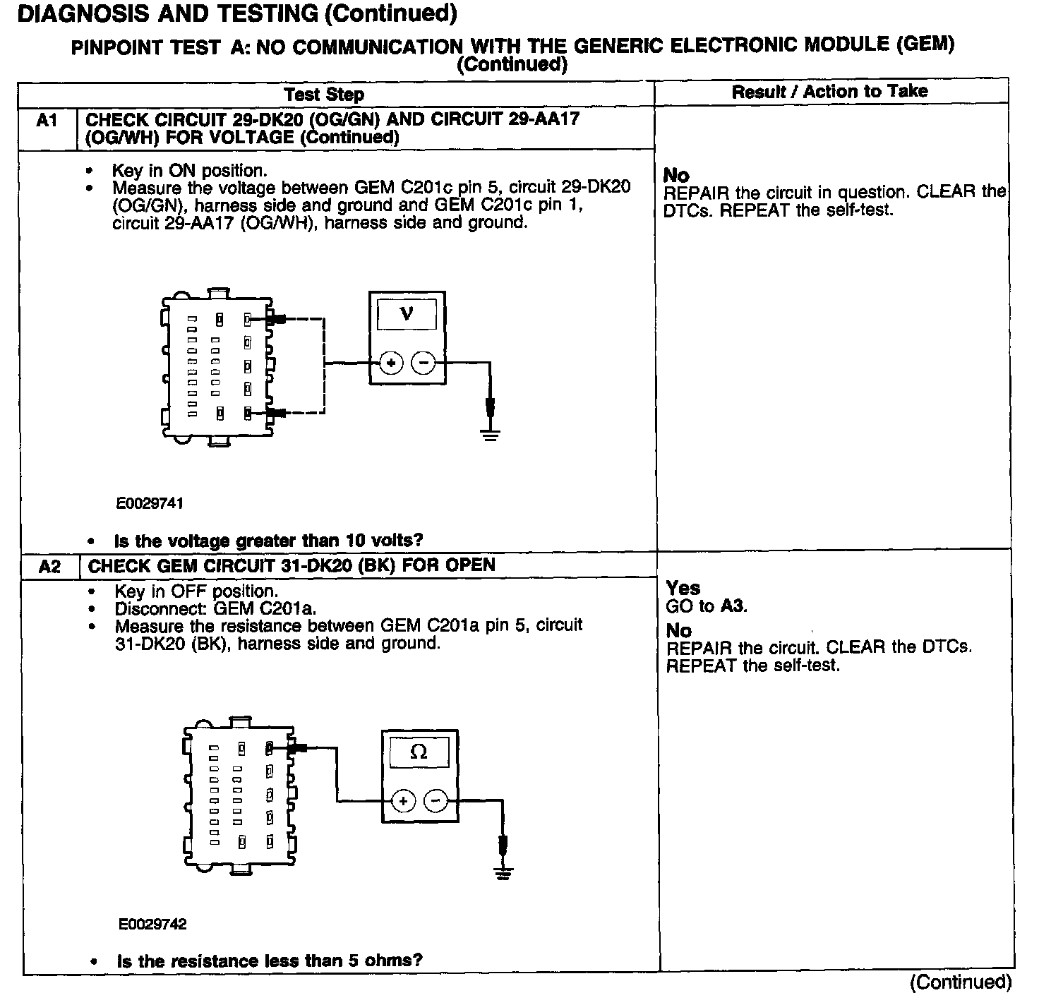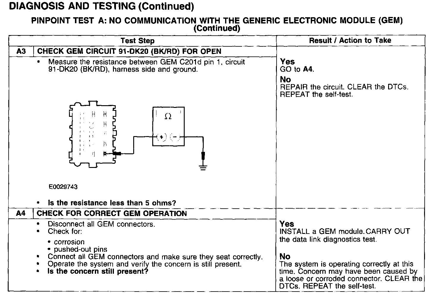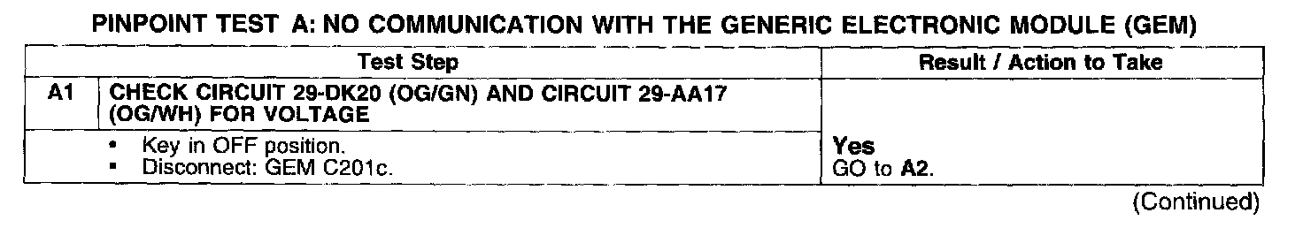 PINPOINT TEST A: NO COMMUNICATION WITH THE GENERIC ELECTRONIC MODULE (GEM)