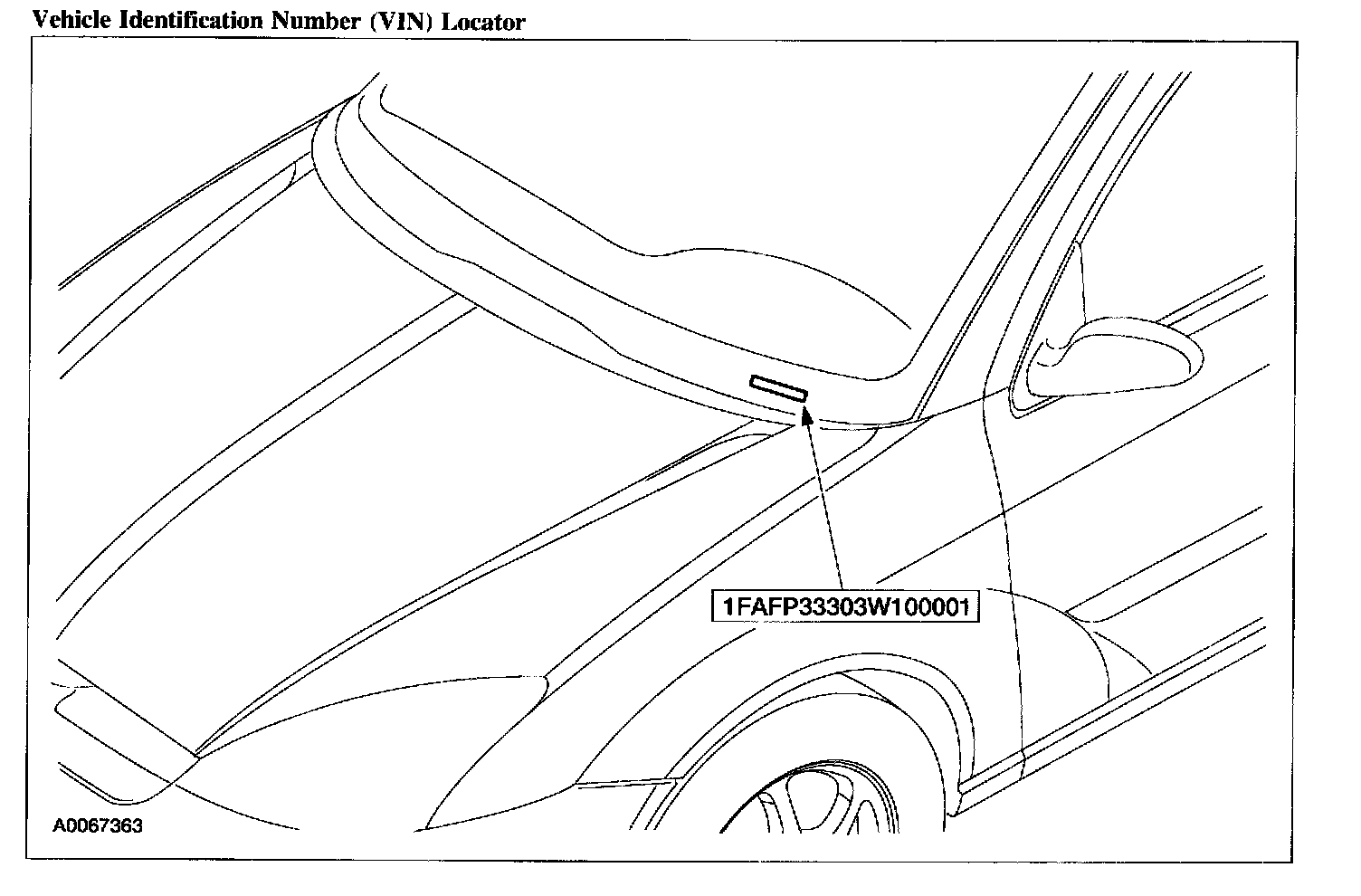 The vehicle identification number (VIN) is a seventeen-digit combination of letters and numbers. The VIN is stamped on a metal tab riveted to the instrument panel, top upper left of the dash. The VIN is also found on the vehicle certification (VC) label.