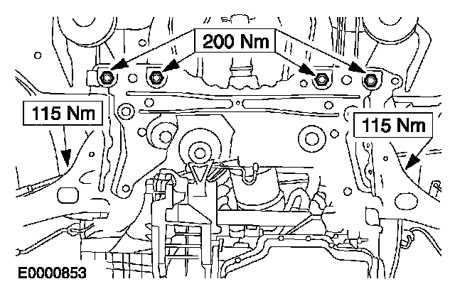 2. CAUTION: While tightening the crossmember retaining bolts, make sure the crossmember does not move.