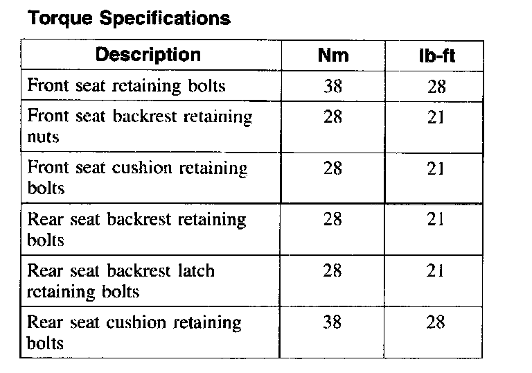 Torque Specifications: