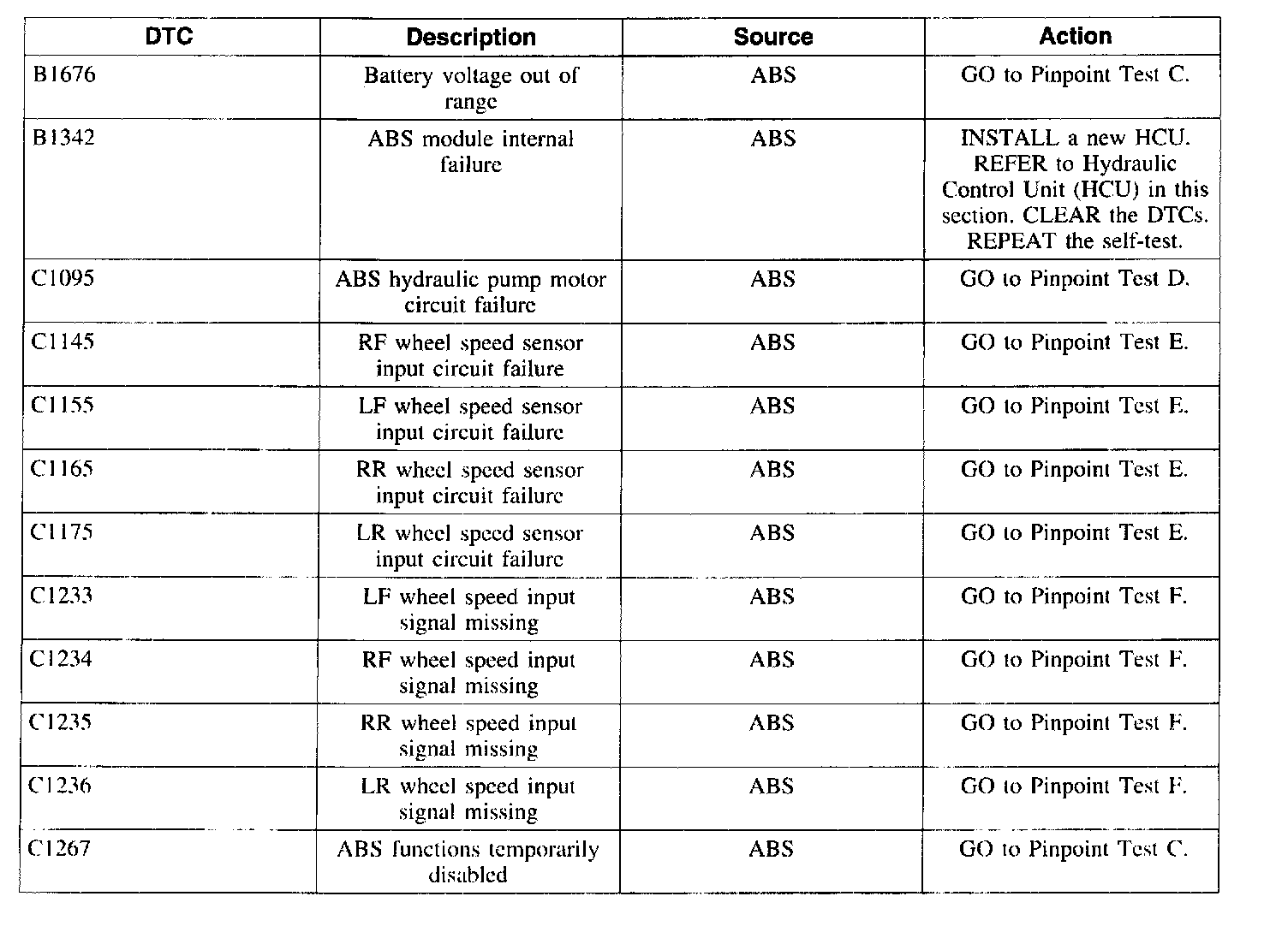 ABS Control Module Diagnostic Trouble Code (DTC) Index