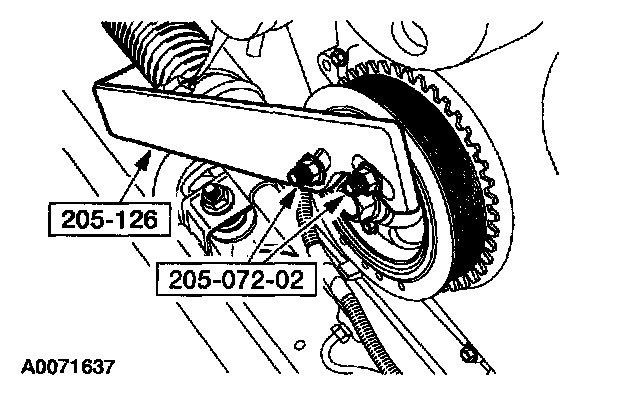 72. Install the flywheel or the flexplate and the bolts. Tighten the bolts in the sequence shown in three stages.