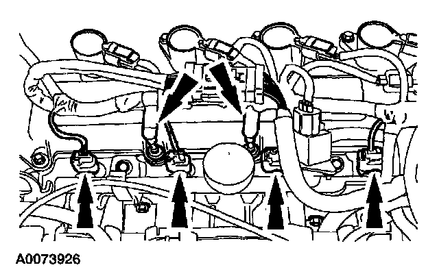 54. Connect the fuel injector connector and the wiring harness pin-type retainers.