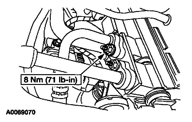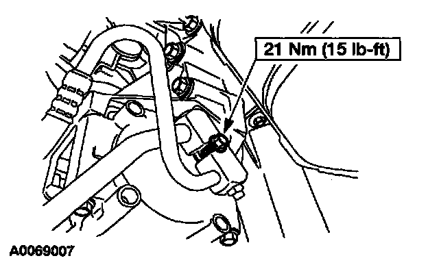7. Loosen the bolt and remove the compressor manifold and tube.