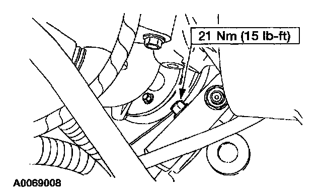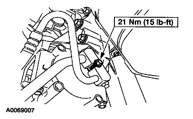 6. Remove the bolts and position the power steering line aside.