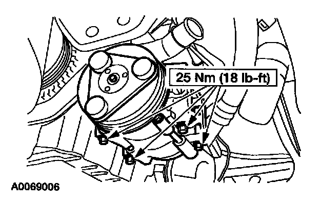 7. Remove the three compressor bolts and lower the A/C compressor.