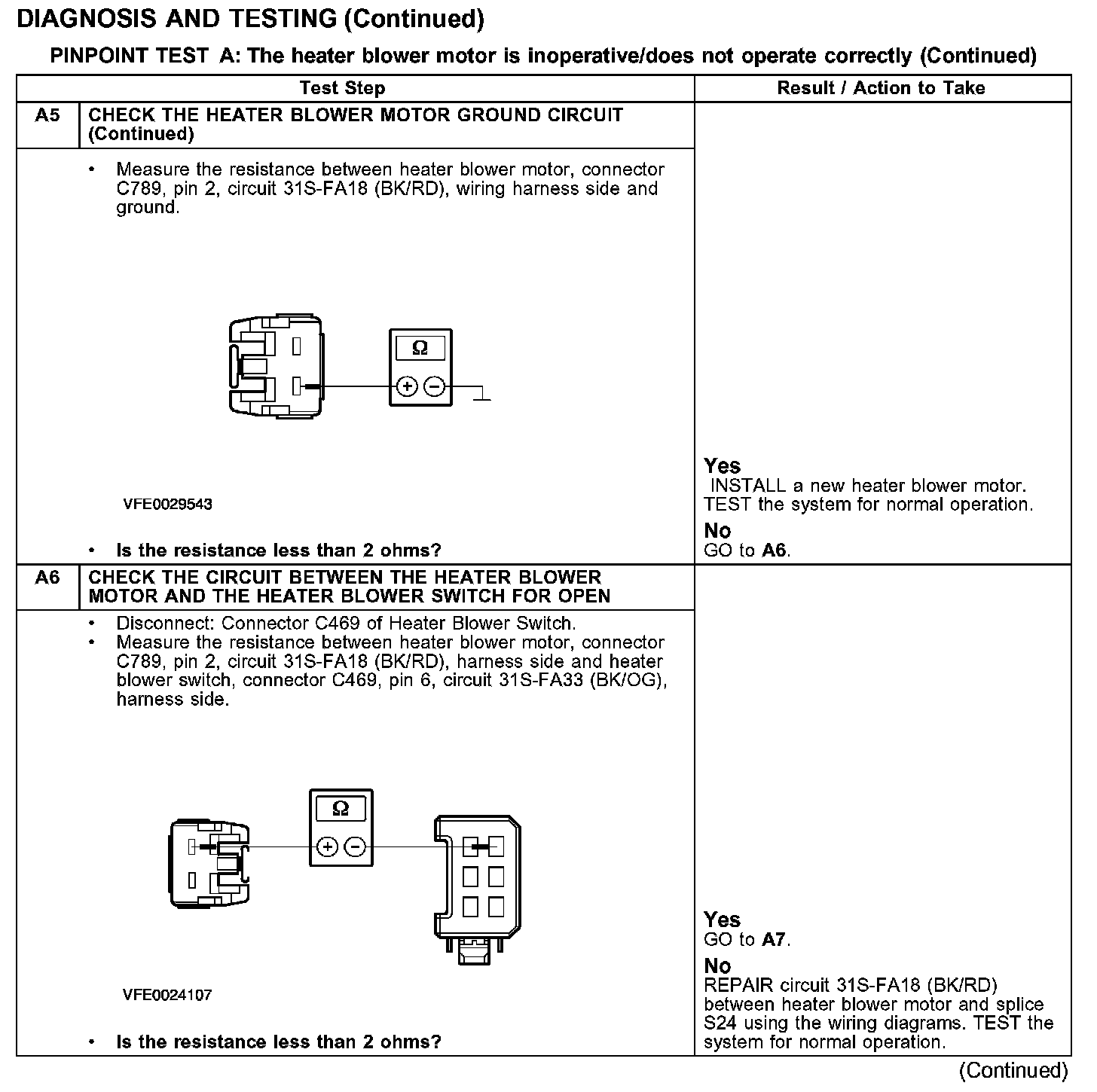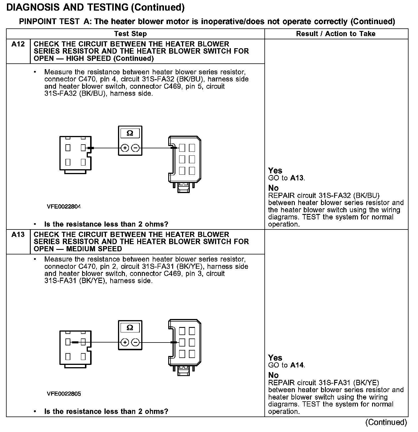 PINPOINT TEST A: THE HEATER BLOWER MOTOR IS INOPERATIVE/DOES NOT OPERATE CORRECTLY