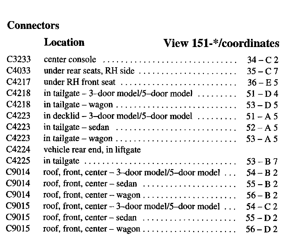 PLEASE NOTE: If a link on the Connector Location Index to a view is not provided, that means that the Connector and/or View in question does NOT apply to the vehicle model selected.