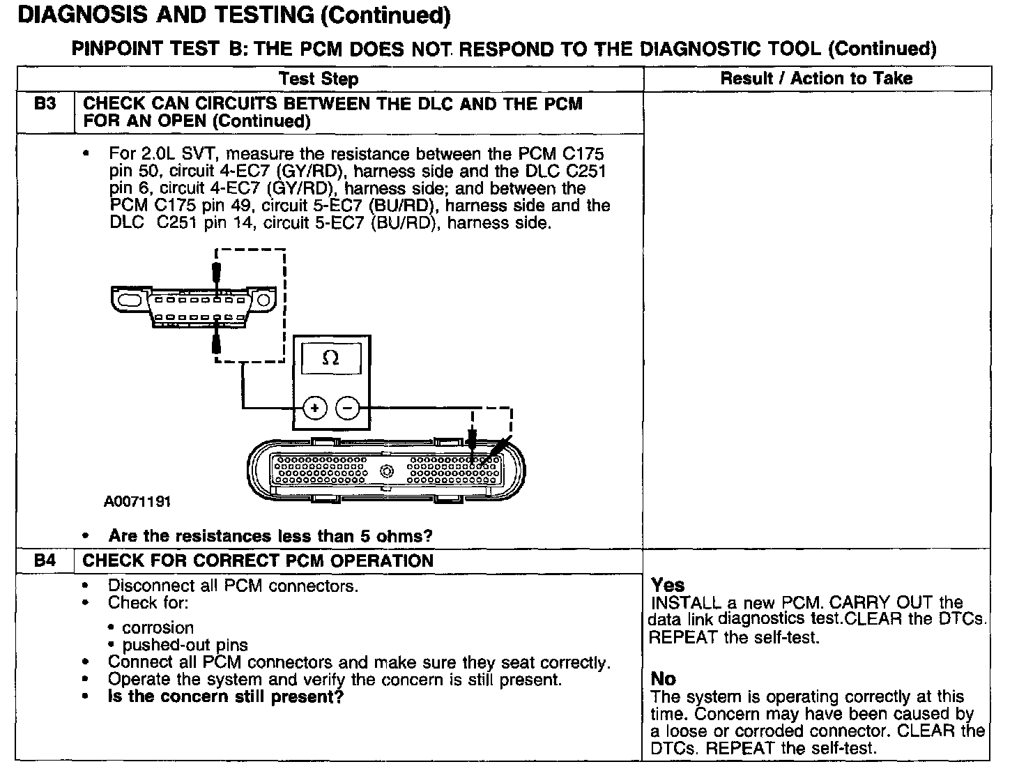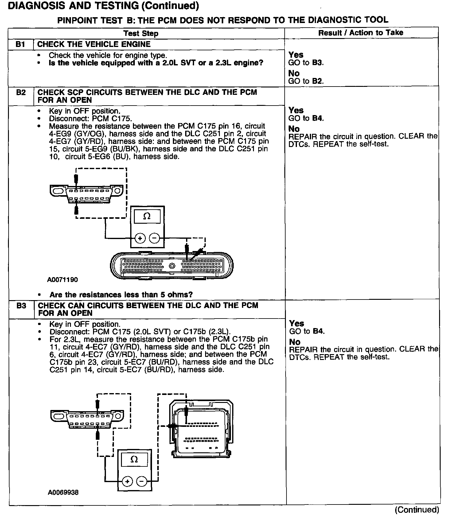 PINPOINT TEST B: THE PCM DOES NOT RESPOND TO THE DIAGNOSTIC TOOL