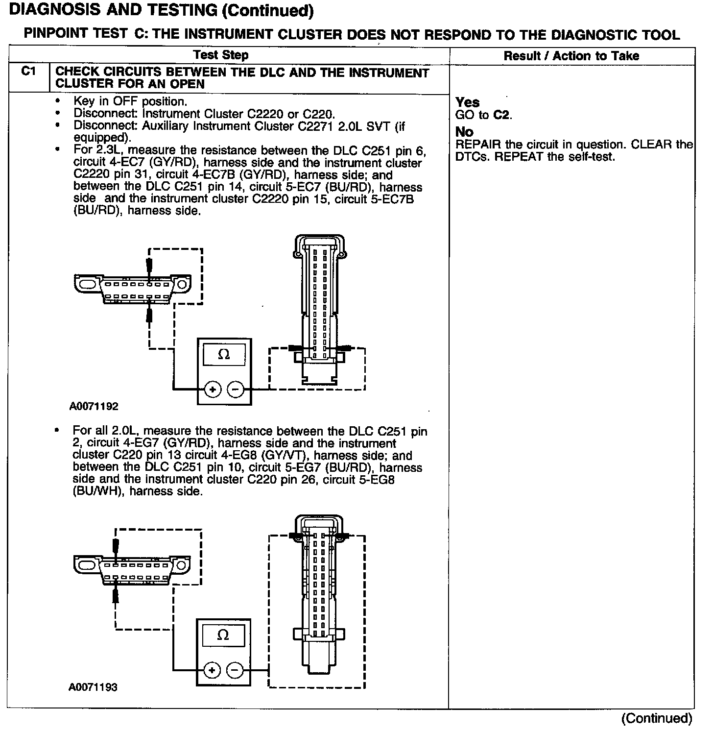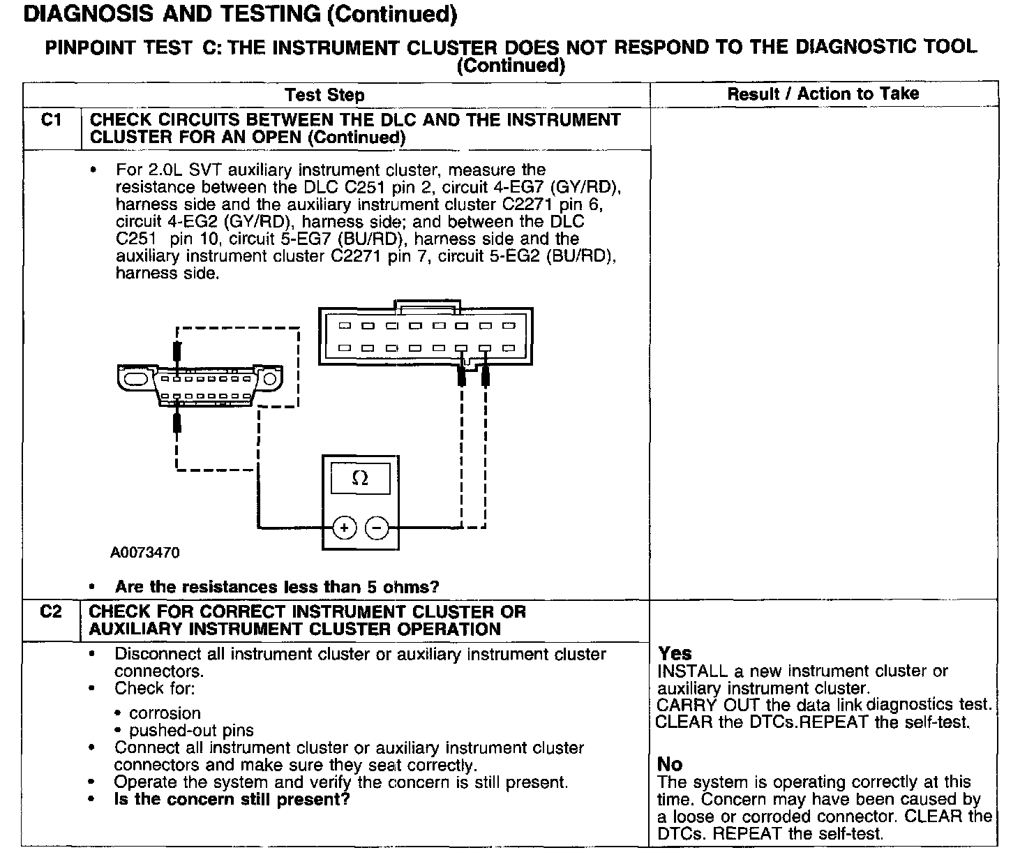 PINPOINT TEST C: THE INSTRUMENT CLUSTER DOES NOT RESPOND TO THE DIAGNOSTIC TOOL