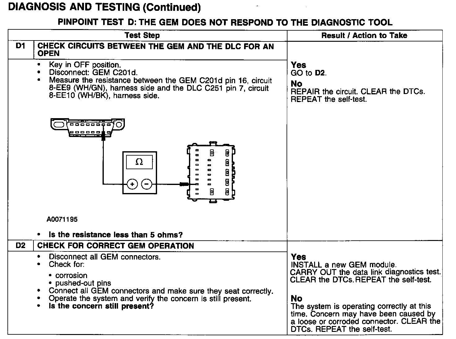 PINPOINT TEST D: THE GEM DOES NOT RESPOND TO THE DIAGNOSTIC TOOL