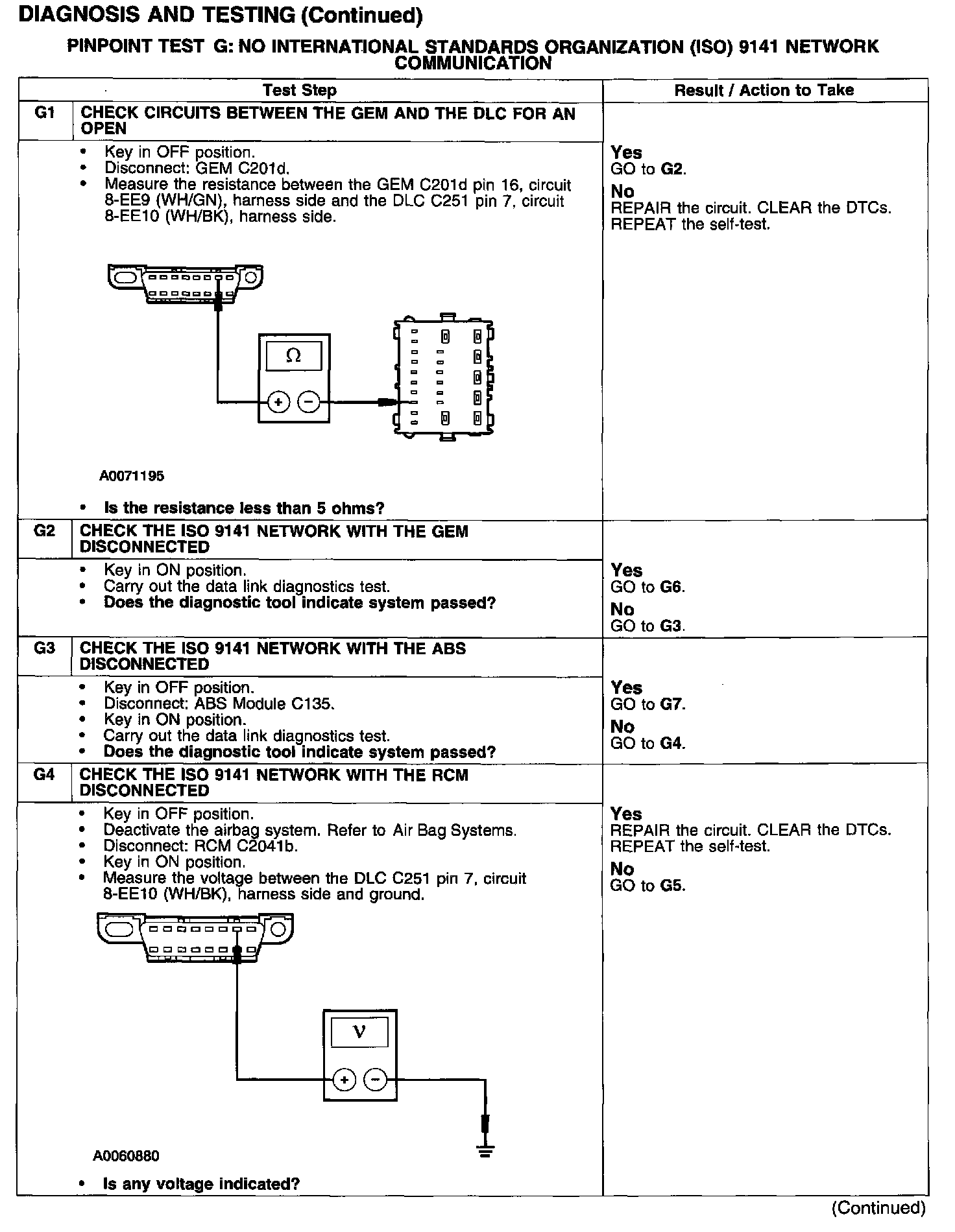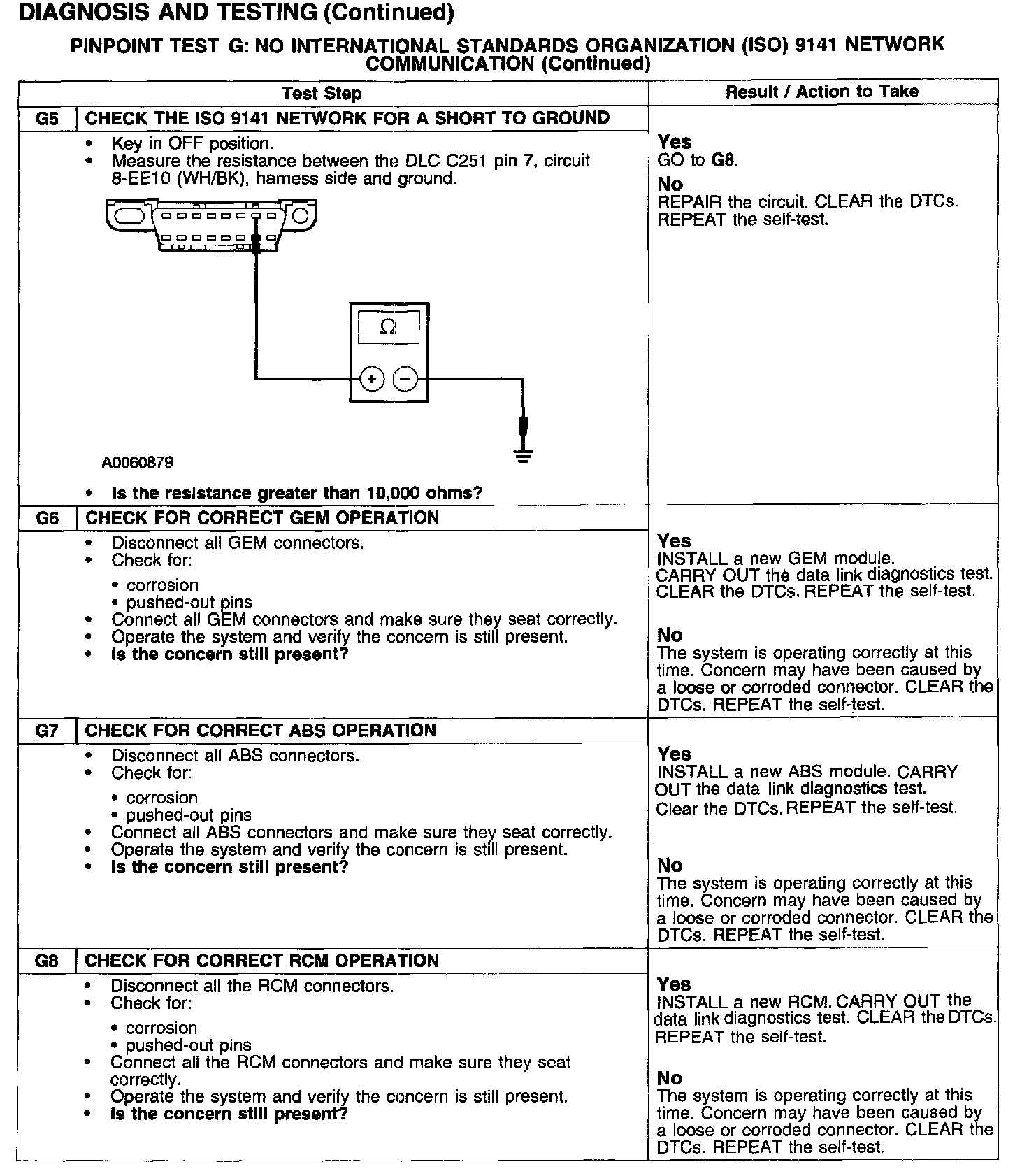 PINPOINT TEST G: NO INTERNATIONAL STANDARDS ORGANIZATION (ISO) 9141 NETWORK COMMUNICATION