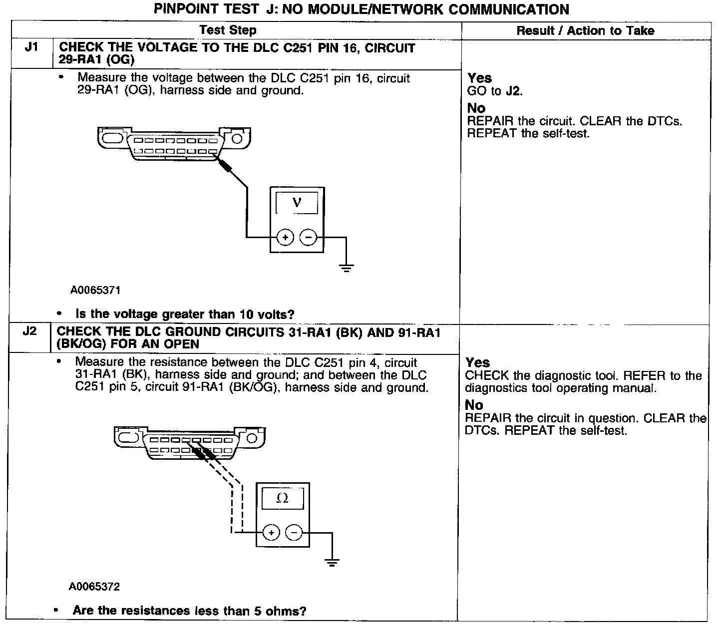 PINPOINT TEST J: NO MODULE/NETWORK COMMUNICATION