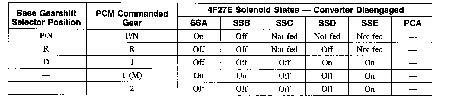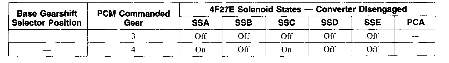 Solenoid Operation Chart-Converter Disengaged