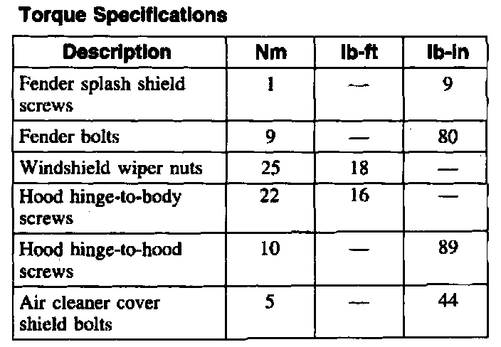 Torque Specifications: