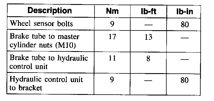 Torque Specifications