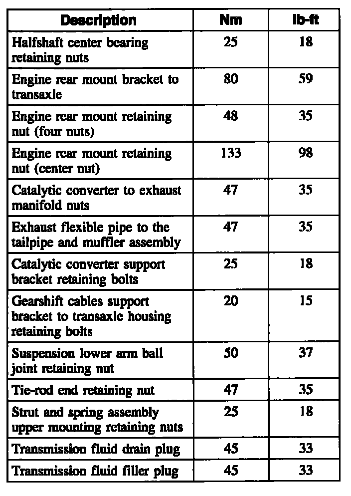Torque Specifications