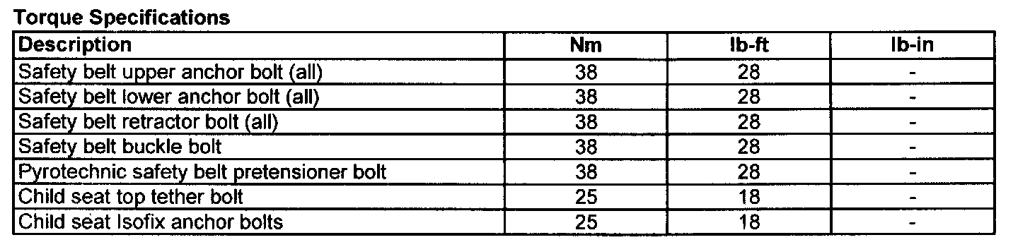 Torque Specifications: