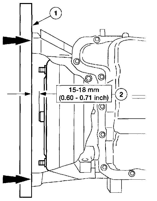 1 Lay a steel straightedge on the automatic transaxle flange.