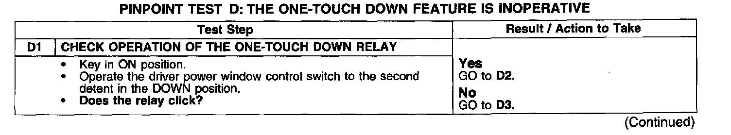 PINPOINT TEST D: THE ONE-TOUCH DOWN FEATURE IS INOPERATIVE