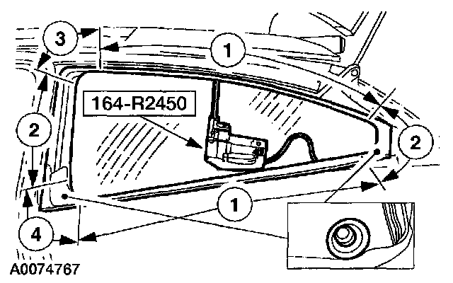11. Check the rear quarter window glass installation for air or water leaks through the urethane seal.