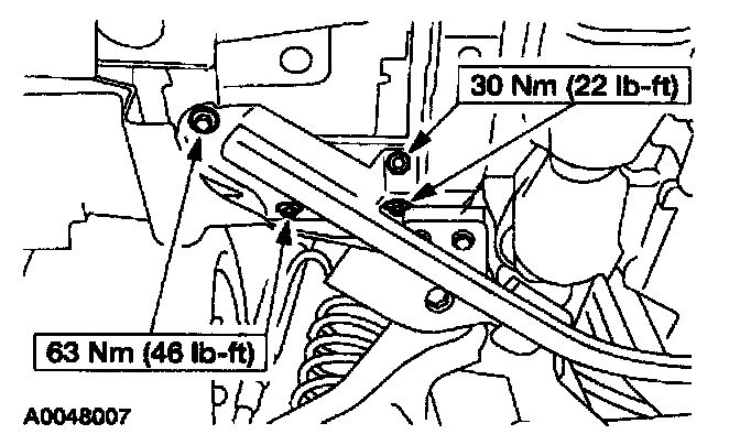 4. Remove the LH front subframe support bolts.